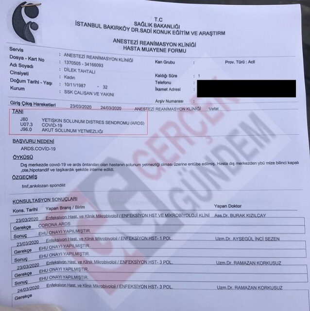 İstanbul’da özel bir hastanenin hasta kabul/Acil biriminde hemşire olarak çalışan 32 yaşındaki Dilek Tahtalı koronavirüs tanısıyla tedavi gördüğü hastanede hayatını kaybetti.