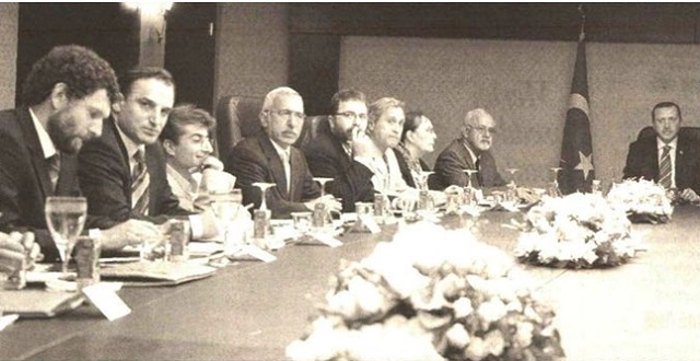 10 Ağustos 2005, zamanın başbakanı Recep Tayyip Erdoğan PKK’ya derhal ve önkoşulsuz silah bırakma çağrısı yapan ve 150 kişinin imzasıyla yayımlanan Aydınlar Bildirisi’nin ele alındığı toplantıda bir grup aydınla görüşürken. Toplantıya; Adalet Ağaoğlu, Gencay Gürsoy, Osman Kavala, Ahmet Hakan Coşkun, Ali Bayramoğlu, Nuray Mert ve Oral Çalışlar da katılmıştır. Sol başta Osman Kavala, sağ başta ise Recep Tayyip Erdoğan görülmektedir.
