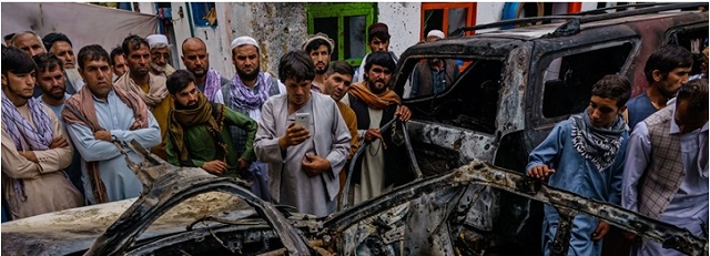 Kabil kentinde 30 Ağustos 2021 günü gerçekleştirilen ABD dron saldırısında aralarında yedi çocuğun olduğu bir ailenin 10 üyesi hayatını kaybetmiş, Pentagon ise intihar bombacılarını taşıyan bir aracı vurduğunu açıklamıştır. Kurbanların cenaze töreninde ‘‘AMERİKA’YA ÖLÜM!’’ sloganları atılmıştır. ABD ordusu tarafından yapılan resmi açıklamada; aracın vurulmasının ardından yaşanan patlamaların içinde önemli miktarda patlayıcı olduğunun bir göstergesi olduğu masalı anlatılmıştır.