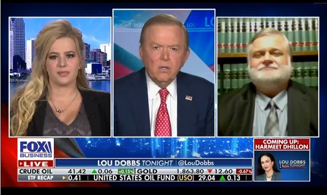 Soldan sağa muhbir Melissa Carone, Fox News sunucusu Lou Dobbs ve Trump’ın yasal ekibinden David Kallman. Kaynak: DJHJ MEDIA