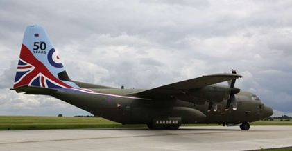 Birleşik Krallık Kraliyet Hava Kuvvetleri’ne (RAF) 50 yıllık hizmet anısına boyanan bir C-130J nakliye uçağı. Kaynak: Marshall