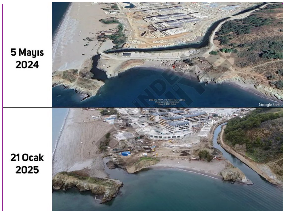 Bir iki tane sivil toplum örgütü çıkmış o da on kişiyi geçmeyen bir insan topluluğuyla açıklama yapıyor; “Ekolojik dengeye zarar veriyorlarmış, kaplumbağalar ve balıkların yumurtlama alanına zarar görüyormuş!” Ne kaplumbağasından ne balığından bahsediyorsunuz siz? Trump’ın Gazze’ye yapmak istediği gibi plajı inşaat projeleri ile çevirmiş, Türk halkını toprağından atıyorlar, siz kaplumbağa diyorsunuz! Olacak iş değil!