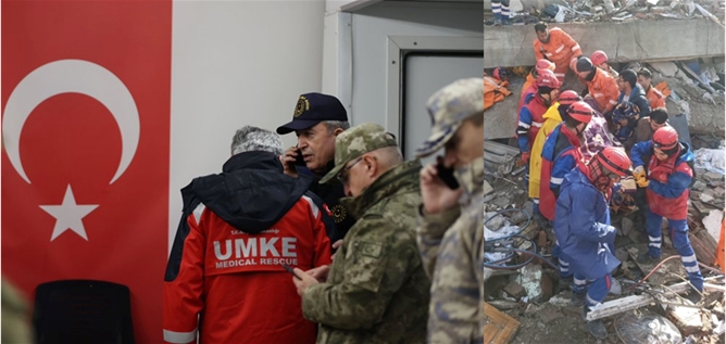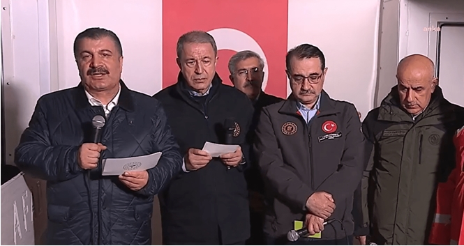 06 Şubat 2023 – 13.15: MİLLÎ SAVUNMA BAKANI HULUSİ AKAR: “Sağlık ekiplerini, arama-kurtarma ekiplerini ve araçlarını deprem bölgesine sevk etmek için uçaklarımızı seferber ettik. Maalesef üç şehidimiz, yaralılarımız var. Birliklerimizde tekrar yoklamaları alıyoruz.”