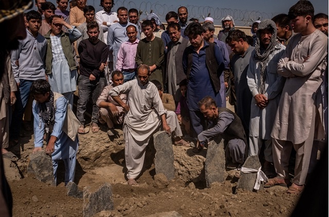 The New York Times gazetesinde yer alan ‘‘Civilian Casualties Reach Highest Level in Afghan War, U.N. Says’’ başlıklı haberde paylaşılan Afganistan’ın başkenti Kabil’de düzenlenen bir cenaze töreni. Fotoğraf: Jim Huylebroek/ The New York Times
