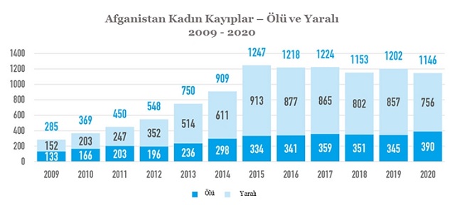 UNAMA-OHCHR Afganistan’da 01 Ocak 2009 ile 31 Aralık 2020 tarihleri arasındaki kadın kayıp sayıları – Ölü ve Yaralı