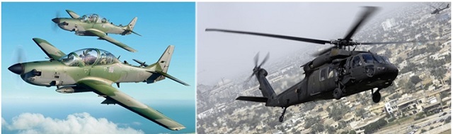 Solda dünya çapında giderek popülaritesi artan Brezilya yapımı Super Tucano A-29 hafif savaş uçağı, sağda ise UH-60 modeli genel maksat helikopteri. Kaynaklar: Military Factory ve FI AeroWeb