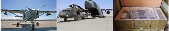 ABD ordusu tarafından Afganistan’da bırakılanlar; soldan sağa AC-208, UH-60 Black Hawk ve kullanılmamış mühimmat.  Kaynak: Sky News