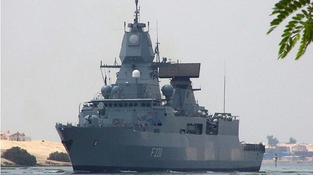 Akdeniz’de tartışmalı olaya karışan Hamburg firkateyni Süveyş Kanalından geçerken. Fotoğraf: AFP