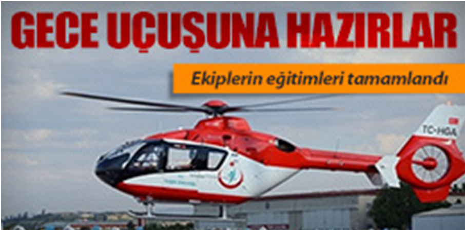 04 Mart 2015 Çarşamba, 18:41:08 Sağlık Bakanlığı Acil Sağlık Hizmetleri Genel Müdürü Osman Nacar, yaptığı açıklamada, daha hızlı, daha kaliteli sağlık hizmeti sunumu için çalıştıklarını, bunlardan birisinin de gece uçuş yapabilecek ambulans helikopter olduğunu söyledi.
