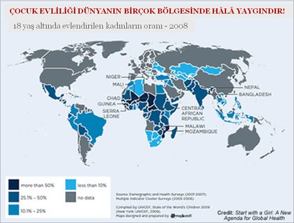 Kız çocuklarının evlenebileceği asgari yaşı belirlemek sadece Arap dünyasını ilgilendiren bir mesele değildir, dünyanın her yerinde kız çocukları aileleri tarafından zorla evlendirilmektedir. Birçok ülkede kız çocuklarının evlilik yaşlarını düzenleyen kanunlar olmasına rağmen, kültür, gelenek ve toplum baskısı altında kalan aileler, kız çocuklarını yasalara aykırı olarak zorla evlendirmeye devam etmektedir.