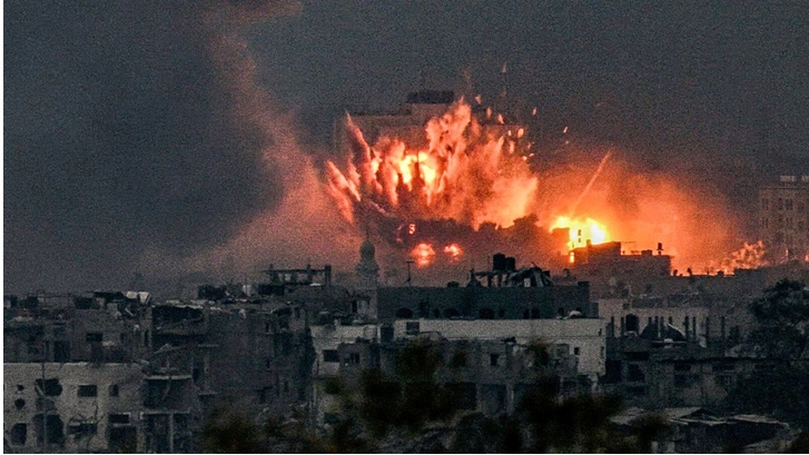 İsrail bombardımanı sonrası Gazze’nin kuzeyinde bir yerleşim yerinden yükselen ateş topu, 14 Ekim 2023. Fotoğraf: AFP