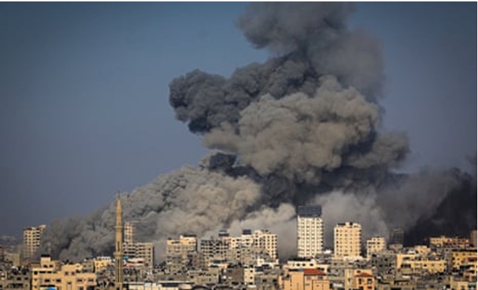 İsrail hava saldırısının ardından Gazze’de yükselen duman bulutları. Fotoğraf: Mahmud Hams/AFP/Getty Images