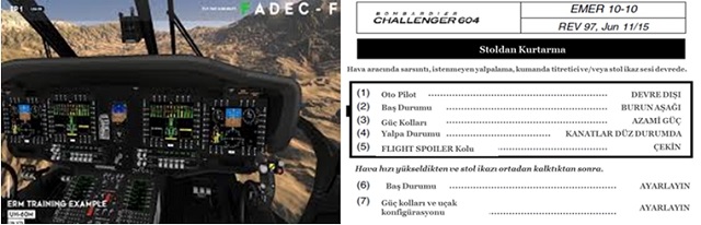 FADEC-F ve Bombardier CHALLENGER 604 modeli uçağın stoldan kurtulma maksadıyla uygulanan klasik acil durum uygulama adımları