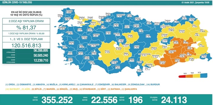 01 Aralık 2021 COVID-19 Aşı Verileri