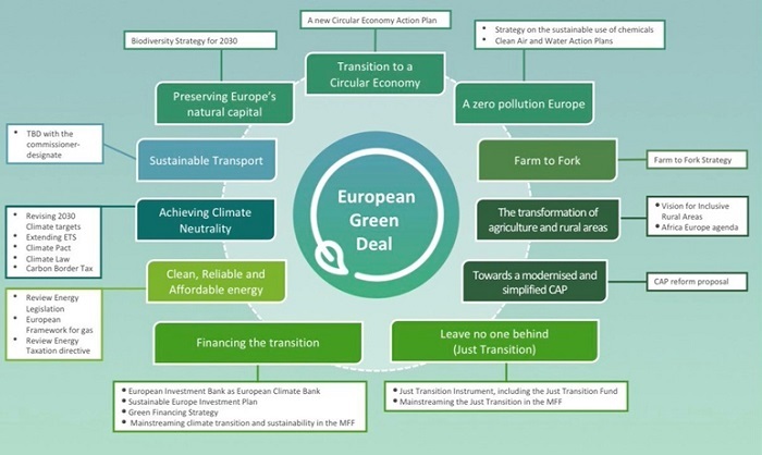 Yeşil Gündem (Green Deal) ve Sürdürülebilir Bağlantısallık konusundaki kümelenmeyle ilgili olarak Türkiye, ulaştırma ve enerji politikaları alanında orta düzeyde hazırlıklıdır. Bulgaristan sınırını İstanbul’a bağlayan, Halkalı-Kapıkule demiryolu hattının yapımına devam edilmesiyle, enerji ve ulaşım ağlarında bazı ilerlemeler kaydedilmiştir. Türkiye, çevre ve iklim değişikliği alanında belirli düzeyde hazırlıklıdır ve hem azaltma hem de uyum açılarından çevre ve iklim konusunda önemli sorunlarla karşı karşıyadır. İklim değişikliği ile ilgili Paris Anlaşması’nın onaylanması, atık yönetiminde ve atık su arıtımında kapasitenin artırılması ve mevzuat uyumu dâhil olmak üzere bazı ilerlemeler kaydedilmiştir, ancak uygulama ve yürütme yetersiz kalmaya devam etmektedir. Türkiye’nin; Paris Anlaşması uyarınca ulusal olarak belirlenmiş katkısını artırarak, uzun vadeli stratejik karbonsuzlaştırma ve uyum planları ile bunları ulusal düzeyde yansıtacak olan gerekli mevzuata yönelik çalışmaları sürdürmesi gerekmektedir. Kaynaklar, tarım ve uyum kümelenmesiyle ilgili olarak Türkiye, tarım ve kırsal kalkınma alanında belirli düzeyde hazırlıklıdır. Bununla birlikte, Türkiye’nin tarım politikasının, AB ortak tarım politikası ana ilkelerinden uzaklaşması nedeniyle, rapor döneminde bir gerileme yaşanmıştır. Türkiye, gıda ürünleri açısından AB’nin önde gelen bir ihracatçısıdır ve rapor döneminde gıda güvenliği, veterinerlik ve bitki sağlığı politikası alanlarında sınırlı ilerlemeler kaydetmiştir.