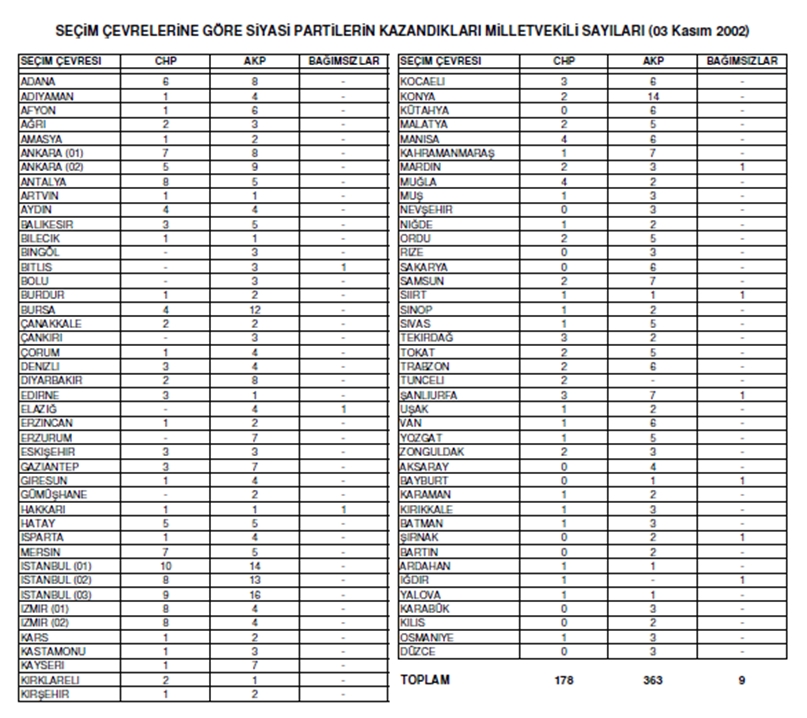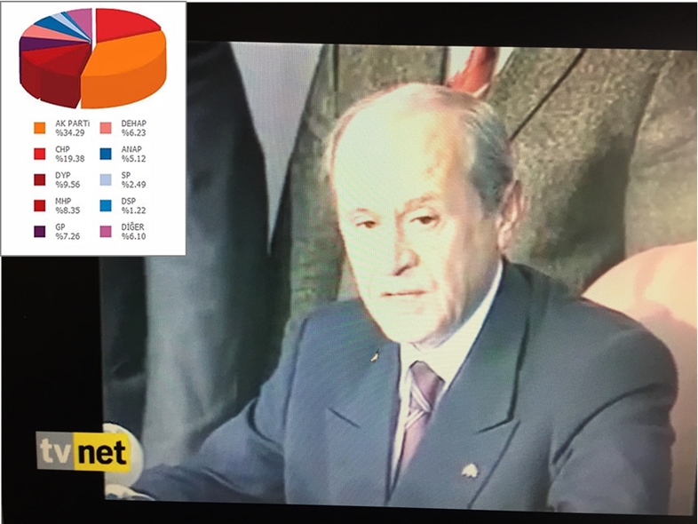 Türkiye’nin mali ve siyasi çalkantı içinde bulunduğu 2002 yılında Türkiye’yi erken seçime zorlayan Bahçeli’dir. Ancak siyasi kargaşadan çıkar sağlamayı uman Bahçeli aldığı %8,36 oy oranı ile meclis dışı kalmış ve Erdoğan’ın Adalet ve Kalkınma Partisi’nin (AKP) sadece sandalye kazanmasına değil, aynı zamanda yeni parlamentoya hakim olmasına da zemin hazırlamıştır (AKP %34,28 oy oranı ile 550 sandalyeden 363’ünü kazanmıştır). Başka herhangi bir demokraside, böylesine feci bir sonuç siyaset sahnesinden tamamen silinme anlamına gelirken Türkiye’de durum böyle değildir. Bahçeli, siyasetin ilk kuralını çiğnemiş ve düştüğü çukuru kazmaya devam etmiştir.