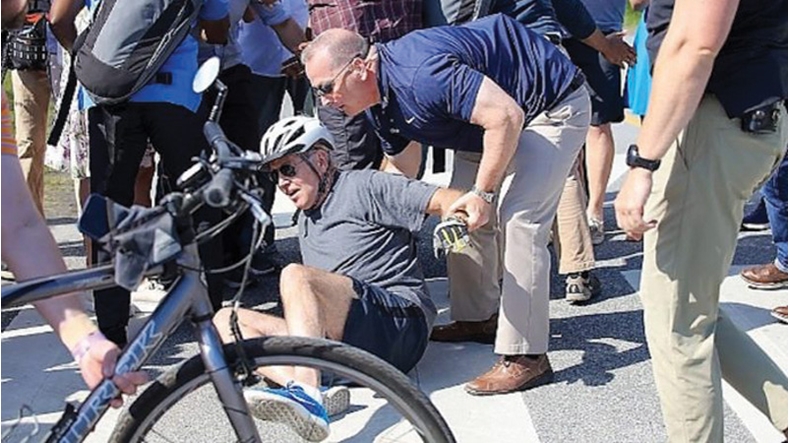 Haziran 2022, bisikletten düşen Başkan Joe Biden’e yardım eden gizli servis ajanları, Delaware. Fotoğraf: Daily News.