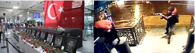 İslami Devlet terör örgütünün Türkiye’de üstlendiği saldırılar, solda 28 Haziran 2016’da Atatürk Havalimanı’na düzenlenen saldırıda 46 kişi ölmüş ve 239 kişi yaralanmıştır. 05 Ocak 2017 tarihli Reina saldırısında ise 39 kişi ölmüş, 79 kişi de yaralanmıştır.
