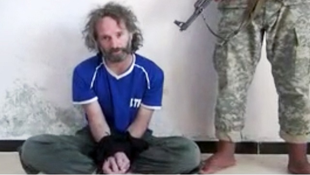 Associated Press tarafından elde edilen video görüntülerinde; Peter Theo Curtis olduğuna inanılan ve El kaide bağlantılı bir Suriyeli grup tarafından rehine olarak tutulan bir ABD vatandaşı açıklama yapmaktadır. Kaynak: Associated Press.