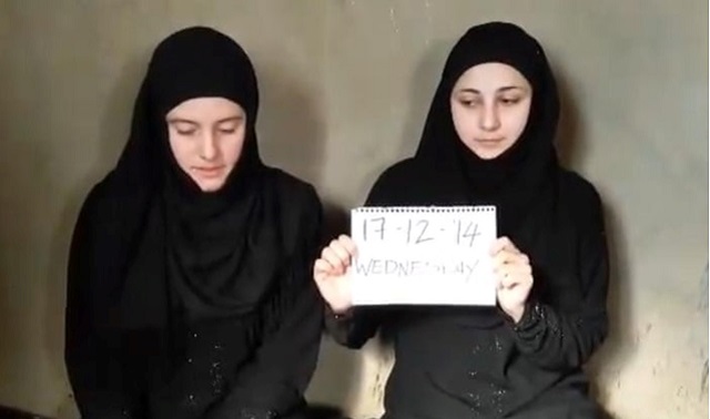 Youtube video görüntülerinden alınan yukarıdaki fotoğrafta, kendilerini İtalyan vatandaşı olarak tanıtan ve 2014 yılı Ağustos ayında, Suriye’de silahlı adamlar tarafından kaçırılan Vanessa Marzullu ve Greta Ramelli görülmektedir. İki yardım gönüllüsü, iddialara göre El Nusra Cephesi terör örgütüne 12 milyon dolar fidye ödenmesi sonrasında serbest bırakılmıştır. İki kadının serbest bırakıldığı haberi İtalyan Parlamentosunda alkışlarla karşılanmıştır. ABD Hazine Bakanlığına göre fidye terör örgütlerinin önemli bir gelir kaynağıdır ve 2004-2012 yılları arasında rehineleri kurtarmak maksadıyla terör örgütlerine toplam 120 milyon dolar fidye ödenmiştir. Fotoğraf: AFP/Getty Images.