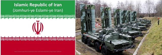 Solda İran İslam Cumhuriyeti bayrağı, sağda ise Rusya’nın İran’a satmayı planladığı S-400 modern hava savunma sistemleri.