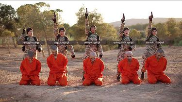İslami Devlet terör örgütü tarafından İngiltere, Mısır, Kürt, Tunus ve Özbek vatandaşları oldukları açıklanan çocuklar ele geçirilen Kürt savaşçıların infazı öncesinde.
