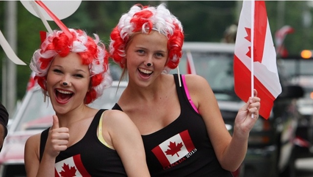 Kanada Günü Törenine katılan Claire Scott ve Kaitlin O’Callaghan kameralara gülümserken. Foto: Dave Chidley/ THE CANADIAN PRESS