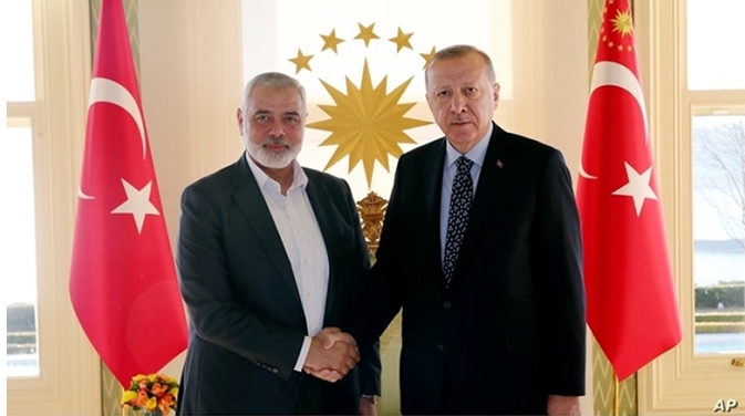 Erdoğan’ın Adalet ve Kalkınma Partisi (AKP), Hamas’ın içinden çıktığı Müslüman Kardeşler ile ideolojik bağlantılarını sürdürmektedir. Erdoğan sürekli olarak Yahudi karşıtı söylemleri desteklemektedir ve Başbakan Netanyahu’ya ‘‘Hamas bir terör örgütü değildir’’ demesi de dâhil olmak üzere açıkça Hamas’ı savunmaktadır. 2017 yılında İstanbul’da düzenlenen bir konferansta Hamas liderinin İsrail’in ‘‘dünyadan silineceği’’ ve ‘‘yok edileceği’’ sözünü verdiği konuşmasında Erdoğan; ‘‘Bugün kendilerini Kudüs’ün sahibi sananlar, yarın arkasına saklanacak ağaç dahi bulamayacaklarını bilmelidirler’’ ifadelerini kullanmıştır.