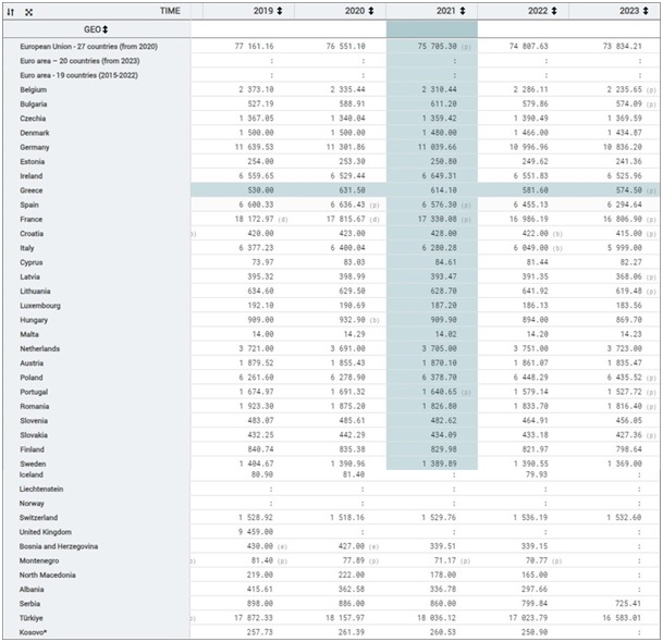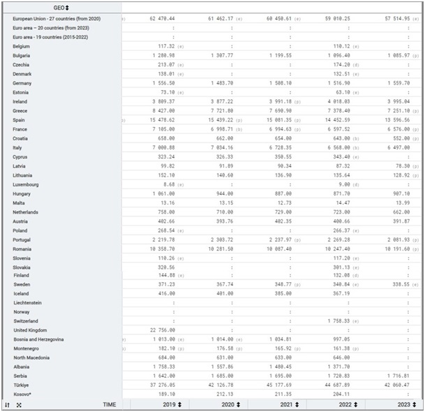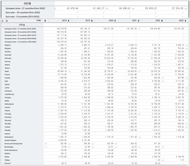 Avrupa Canlı Sığır Sayısı – Türkiye 16.583.01 (X1000) sığır ile Fransa’dan sonra ikinci sırada yer almaktadır. 2023 yılı rakamlarına göre Türkiye’de ayrıca 161.749 manda da bulunmaktadır. Tablodaki 2023 yılı sığır verilerine bakıldığında büyükbaş hayvan sayısında önceki yıllara göre azalma olduğu görülmektedir.