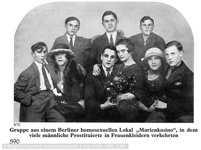 Erkek fahişeliği, homoseksüel barlar ve gece kulüpleri, kabareler o dönemde eşcinsel erkekler, lezbiyenler ve dönmelerle dolup taşmaktadır. Robert Beachy, ‘‘Gay Berlin’’ adlı kitabında; bilim insanlarının aynı cinsle seksin doğal, doğuştan gelen bir karakteristik olduğu sonucuna vardığı yerin Berlin kenti olduğunu yazmaktadır.