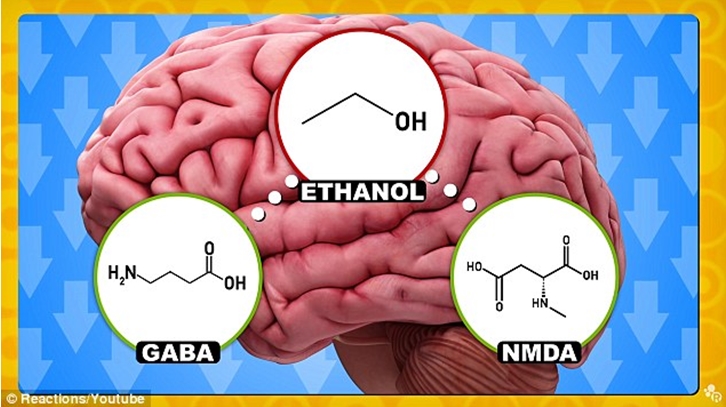 Sydney Üniversitesi’nden sinir sistemi hastalıkları patolojisi uzmanı Greg Sutherland’e göre; alkolün başlıca etkilerinden bir tanesi, içindeki moleküllerin beyindeki iletişim yollarıyla etkileşime girmesi nedeniyle sakinleştirici özelliğidir. Bunun nedeni ise, alkoldeki etanolun beyindeki nöronları uyararak ilgili reseptörleri bloke etmesi ve beynin daha yavaş çalışmasına neden olmasıdır. Alkol bunun yanı sıra insanı sakin ve uykulu hissettiren alıcıları da harekete geçirir ve bu da beyni daha da yavaşlatır.