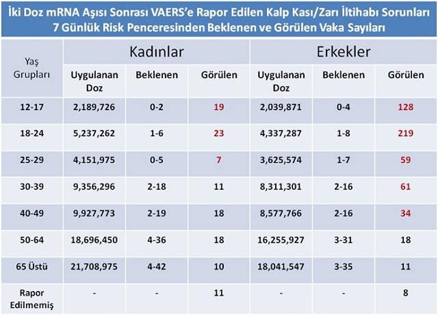 Araştırmacılar ayrıca; en yüksek kalp rahatsızlıkları olumsuz vaka riskiyle karşı karşıya kalanların, iki doz aşı uygulanan 12 ile 15 yaş aralığındaki erkek çocuklar olduğunu da ifade etmektedirler.