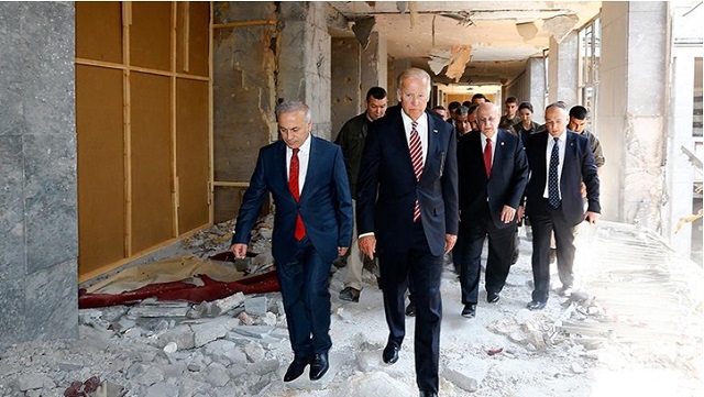 ABD Başkan Yardımcısı Joe Biden 24 Ağustos 2016 günü TBMM’nin bombalanan kısmını gezerken. Fotoğraf: US Department of State