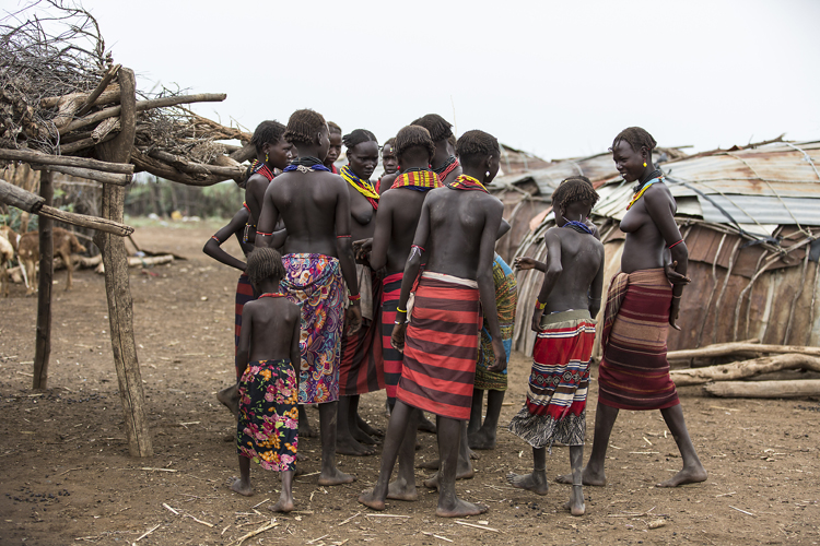 Tekneden inip köye doğru yürümeye başladığımızda bize doğru gülerek neşe dolu hareketlerle gelen çeşitli yaşlarda, belden yukarısı çıplak genç kadınlar ve kızlar görüyorum. Bizdeki deyimle takmış takıştırmışlar, sürmüş sürüştürmüşler, bir de yüzlerine gülücük kondurmuşlar. Sanki Dassanech Kabilesi’nin yeni açan gül goncaları. Çok ama çok şekerler. Gençlik ve güzelliklerinin etrafa verdiği olumlu enerjinin onlar da farkındalar. Bu enerjiye ve içten gelen samimiyetin cazibesine kapılmamak mümkün değil. Hemen gelenlere doğru rehberi de peşime takarak ilerliyorum. Rehber aracılığı ile konuşmalarımızda karşı kıyıya geçmek için teknelere gidiyorlarmış. Kimisi çalışmak ve kimi de alışveriş için. Uzaklardan gelmiş bizleri görmekten son derece mutlular, ama bizimle beraber olamayacaklarından bir o kadar da üzüntüler. İlerledikçe birkaç gruba daha rastlıyorum.