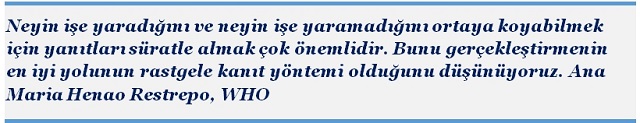 Farklı metodolojiler kullanılan birçok küçük denemeler, bize insanların yaşamlarını kurtarabilmek için ihtiyaç duyduğumuz güçlü kanıtları vermeyebilir. Dünya Sağlık Örgütü Direktörü Tedros Adhanom Ghebreyesus.
