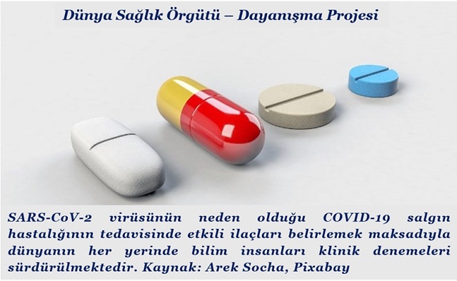 Dünya Sağlık Örgütü, SOLIDARITY – DAYANIŞMA adlı küresel bir klinik denemenin düğmesine basmıştır. Bu klinik deneme ile hedeflenen; salgın haline gelen çok tehlikeli COVID-19 solunum sistem hastalığı hakkındaki verileri toplamak, hastaların hayatlarını kurtarmak ve aşırı bir yük altında ezilen sağlık sistemini rahatlatmaktır. Hastalığa karşı koordineli ve kolektif bir şekilde karşı koymayı hedefleyen bu projeye düzinelerce ülkeden binlerce hasta ve hastanenin katılması beklenmektedir. Proje kapsamında; geçmişte lisans alan ve diğer hastalıkların tedavisinde kullanılmakta olan dört adet ilaç veya ilaç bileşimi kullanılacaktır ve bu klinik denemeye 10 ülke katılacağını açıklamıştır.