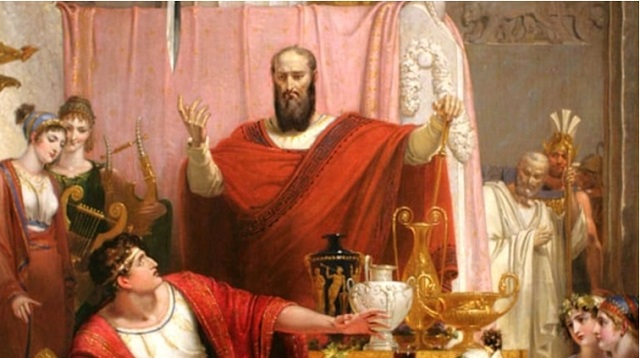 Ünlü ‘‘Demokles’in Kılıcı’’ terimi, Romalı filozof Cicero’nun MÖ 45 yılında kaleme aldığı ‘‘Tusculan Tartışmaları’’ adlı kitabında popüler hale getirdiği antik bir ahlaki hikâyeye kadar uzanmaktadır. Cicero’nun hikâyesinin versiyonu; milattan önce dördüncü ve beşinci asırlarda bir zamanlar Sicilya’nın Syracuse kentini yöneten zalim kral Dionysius II üzerinde odaklanmaktadır. Zengin ve muktedir olmasına Dionysius inanılmaz derecede mutsuzdur.