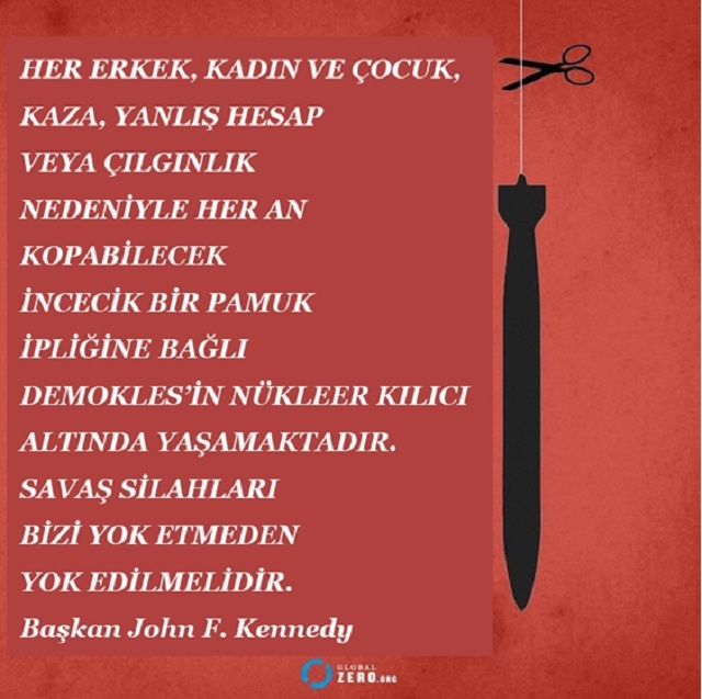 Benzer şekilde ‘‘pamuk ipliğine bağlı’’ terimi de endişe verici veya hassas durumları nitelendirmede kullanılan bir ifade halini almıştır. Bu deyimin en bilinen ve en çok akıllarda kalan kullanımı, Soğuk Savaş esnasında, 1961 yılında Birleşik Devletler Başkanı John F. Kennedy tarafından Birleşmiş Milletler’de yaptığı konuşmada olmuştur. Başkan Kennedy dünyayı saran nükleer savaş tehlikesini vurgulamak maksadıyla; ‘‘Her erkek, kadın ve çocuk, kaza, yanlış hesap veya çılgınlık nedeniyle her an kopabilecek incecik bir pamuk ipliğine bağlı Demokles’in nükleer kılıcı altında yaşamaktadır. Savaş silahları bizi yok etmeden yok edilmelidir.’’ ifadelerini kullanmıştır.