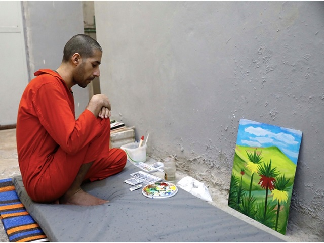 Kürtlerin kontrolündeki hapishane komutanının ifadesine göre bazı İslami Devlet terör örgütü militanları kafa kesme saplantısından kurtulmaları için resimle uğraşmaktadır. Kaynak: Giorgos Moutafis / BILD.