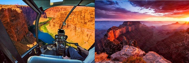 Dünyanın en göz kamaştırıcı yerlerinden bir tanesi olan Büyük Kanyon, ABD’nin Arizona eyaletinde Colorado Nehri çevresinde bulunan dik yamaçlı bir kanyondur. Büyük kanyon, Colorado Nehrinin milyonlarca yıllık ustaca çalışması sonrası oluşan dünyanın en derin vadisidir. Toplam 466 kilometre uzunluğunda ve 1600 metre derinliğinde olan kanyon devasa bir yarık olarak tanımlanabilir. Büyük Kanyon en iyi havadan gözlemlenebilir, hatta bazı helikopter şirketlerinin nehir bot turları için vadi tabanına iniş-kalkış izinleri dahi bulunmaktadır. Havadan yapılan bir Büyük kanyon turunda Vegas Strip, Hoover Dam ve Mojave Çölü de görülebilmektedir. Büyük Kanyon’u havadan görmek isteyen ziyaretçiler için uçak ve helikopter tur hizmeti sağlayan birçok havacılık şirketi bulunmaktadır.
