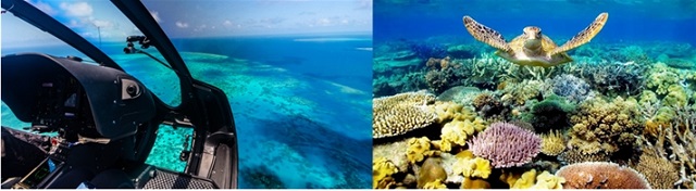 Büyük Set Resifi, birbirinden ayrı 2,900 resif (mercan kayalığı) ve 900 adadan oluşan, 2,600 kilometre genişliğe yayılmış 344,400 km² alanı ile dünyanın en büyük resif sistemidir. Böylesine geniş bir alanı ziyaretçilere en iyi şekilde gösterebilmek maksadıyla birçok havayolu şirketi bölgede faaliyet göstermektedir. Uçuş esnasında bazen köpekbalıkları, kaplumbağalar ve vatoz balıkları dahi görülebilmektedir. Dünyanın yedi doğal harikasından bir tanesi olan Büyük Set Resifi birçok insanın görmek istediği bir yerdir ve Ziyaretçilerin bazı mercan adalarına ulaşabilmesi için belirli sayıda helikopter inişlerine de izin verilmektedir.