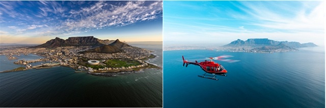 Rio de Janerio kentine benzeyen Cape Town kentinin dağlık kıyıları ve inanılmaz doğal güzellikleri havadan görülmek için birebirdir. Kısa turlarda kentin çeşitli yerleri, düz tepeli Table Dağı, 12 havari ve tarihi Robben Adası görülebilirken daha uzun uçuşlarda Noorhoek, Kommetjie ve Fish Hoek banliyöleri de görülebilmektedir. Bütün uçuşlar videoya kaydedilmekte ve müşterilere sunulmaktadır. Bir helikopter tur firması reklamında dost canlısı ve yüksek yetenekli profesyonel pilotlar ile uçuş hizmetlerinin sağlandığını ve helikopterlerinin de üstün teknoloji ürünü ve güvenilir olduklarını öne çıkarmaktadır.