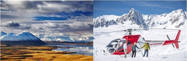 Yeni Zelanda South Island’ın batı sahilinde Fox ve Franz Josef buzulları karla kaplı dağ zirveleri ile deniz seviyesindeki ormanlar arasında benzersiz bir şekilde konumlanmıştır. Franz Josef Buzulu 12 mil uzunluğundadır ve dünyanın en hızlı değişen buzullarından bir tanesidir. Bu buzullara ulaşabilmek için karadan 3-4 saat yol almak gerekirken helikopter turları ile çok daha kısa sürelerde çok daha fazla güzellikler görmek mümkündür. Helikopterler her iki buzula da iniş yapabilmekte ve bazı helikopter turlarında her iki buzulu da görmek mümkün olmaktadır. Bir havacılık şirketi sonradan yer yok diye büyük hayal kırıklığı yaşamamak için ziyaretçilere önceden yer ayırtmalarını tavsiye etmektedir.