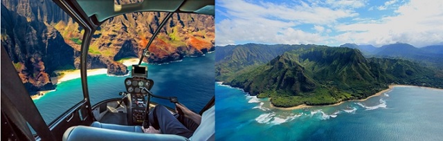 Hawaii adalarının en eskisi, eyaletin ulaşılması en zor yerlerinden bir tanesi olan bir cennete de ev sahipliği yapmaktadır ve buradaki güzel manzaraları görebilmek sadece havadan mümkündür. Helikopter turlarında adanın çevresinde uçulmakta ve ziyaretçilerin Na Pali sahilindeki sarp kayalıkları, Pasifik’in Büyük kanyonu olarak adlandırılan Waimea Kanyonu’nu, 600 metre yükseklikteki Waipo şelalesini ve Waialeale Kraterini görmelerine imkân sağlanmaktadır. Görülecek yerler arasında Jurassic Park filmi ile ünlü olan baş döndürücü Manawaipouna şelalesi de bulunmaktadır. Bir şirket reklamında; binlerce uçuş saati olan son derece yetenekli ve deneyimli profesyonel pilotlar ile uçuş hizmeti verildiğinin altı çizilmektedir.