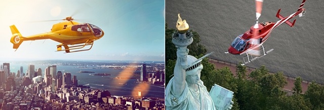 New York kentini havadan görmekten daha iyi bir yöntem olmayabilir. Ziyaretçiler kenti karadan gezebilirler, ancak kentin tam dokusu ve farklı özellikleri sadece havadan tam olarak keşfedilebilir. Manhattan Adası’nın en güney ucundan başlayan helikopter turları ile Özgürlük heykeli, Ellis Adaları, 104 katlı ve dünyanın en yüksek dördüncü binası olan yeni Dünya Ticaret Merkezi görülebilir. Daha uzun süreli helikopter turları ile Manhattan, Brooklyn, George Washington, Verrazano-Narrows Köprüleri, Wall Street, Empire State Building, Central Park, Yankee Stadium ve New Jersey kayalıkları da görülebilir.