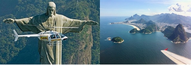 Sugar Loaf Mountain ve ünlü İsa Heykeli dâhil Rio kentinin Corcovado Körfezini çevreleyen granit dağları havadan görülmeyi bekleyen inanılmaz güzellikteki yerlerdir. Eşsiz güzelliklerin olduğu bu sahil kentini havadan görmek ziyaretçilerin hafızalarında unutulmaz hatıralar bırakmaktadır. Ünlü Copacabana ve Ipanema kumsalları ziyaretçilere havadan benzersiz güzellikler sunmaktadır. Yukarıdaki fotoğrafta helikopterin oldukça yakınından geçtiği İsa Heykeli 635 ton ağırlığında ve 30 metre yüksekliğindedir. İsa’nın kol açıklığının uzunluğu ise 28 metredir. Bir helikopter tur şirketinin reklamında bu heykeli helikopter içinden görmenin benzersiz bir deneyim olduğunun altı çizilmektedir.