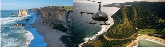 Avustralya’nın en akılda kalan doğal güzelliklerinden bir tanesi olan Great Ocean Road (Büyük Okyanus Yolu) ve ünlü kayalık oluşumları havadan ziyaretçilere eşsiz güzellikler sunmaktadır. 243 kilometre uzunluğundaki bu ulusal mirası görebilmenin en güzel yolu havadandır. Bu yol, 1. Dünya Savaşında hayatını kaybeden arkadaşları adına Avustralyalı askerler tarafından inşa edilmiştir. Karadan görülme imkânı olmayan birçok ayrıntı, helikopter turlarına katılan ziyaretçiler tarafından net bir şekilde görülebilmektedir. Helikopter turları düzenleyen bir şirket reklamında uçuşun zaman kazandırdığını, yolculuk süresini azalttığını ve yoğun trafikten kaçınmayı sağladığını öne çıkarmaktadır.