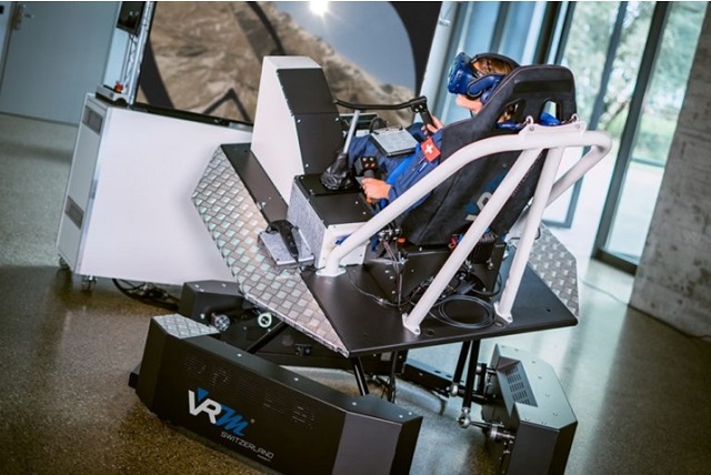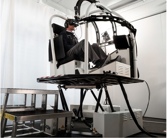 VRMotion firması tarafından geliştirilen sanal gerçeklik tabanlı sentetik uçuş eğitim cihazı pilotların gerçek uçuşta hissettiklerini yerde de algılamalarını sağlayan hareketli bir platforma sahiptir. Fotoğraf: VRMotion.