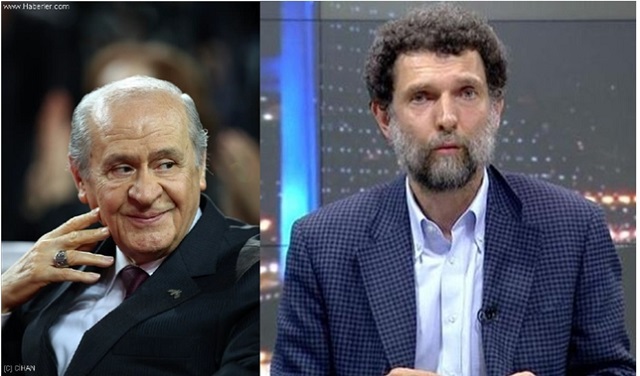 Solda MHP Genel Başkanı Devlet Bahçeli ve Sorosçu olmakla itham ettiği Osman Kavala.