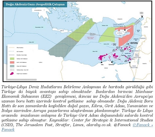 Libya’ya asker gönderme kararını Meclisten çıkartan Erdoğan’ın ana argümanı, Ulusal Mutabakat Hükümetinin devrilmesini önleyerek Libya ile imzaladığımız deniz yetki alanları anlaşmasını korumaktır. Bu anlaşma “Türkiye’nin Marmaris-Fethiye-Kaş kıyı hattı ile Libya’nın Derne-Tobruk ve Bordiya kıyı hattını komşu yapıyor. Bu sayede Türkiye, Yunanistan’ın Girit adasının birkaç mil doğusundan itibaren çok geniş bir deniz sahasının kendisine ait olduğunu, burada kendisinin sondaj yapabileceğini hukuki bir şekilde iddia ediyor. Aynı zamanda Türkiye, bu anlaşma ile İsrail, Mısır, Güney Kıbrıs Rum Yönetimi ve Yunanistan arasında imzalanan Doğu Akdeniz’deki doğal gazı Avrupa’ya taşımayı amaçlayan EastMed boru hattının izini olmadan bölgeden geçemeyeceğini söylüyor. Buraya kadar çok iyi. Anlaşma Türkiye’nin yararınadır.